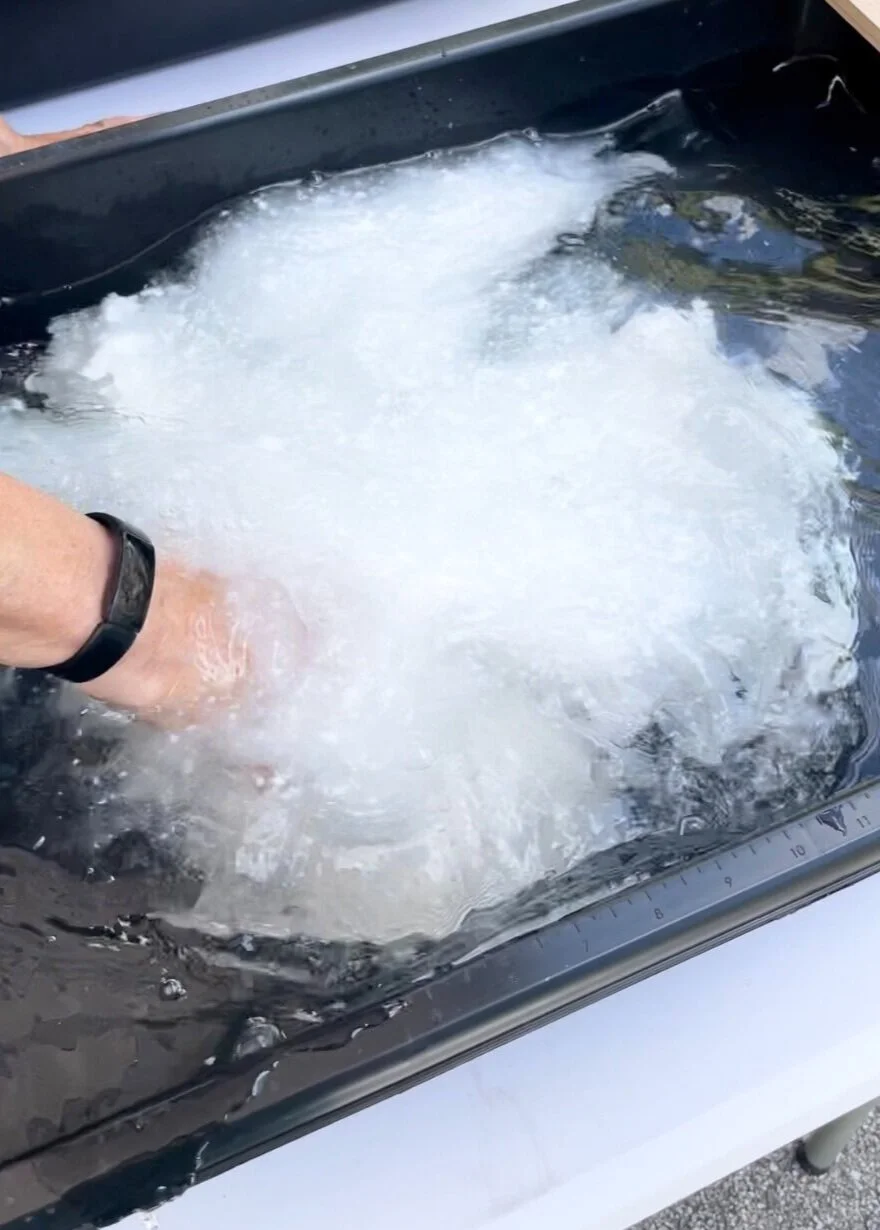 When my artist friend, Avery, and I set up the pop-up outdoor papermaking studio for the second time I had a better idea of which combinations of pulp, materials and methods I wanted to use to manifest what was in my mind. This time around, we needed to juggle busier individual schedules, some rain and wind (which we adapted to by weighing down the tent with makeshift ballast and twine) and threats of thunder and lightning. However, since so many wrinkles were worked out the first time, we were both ready to dive right back in, elbow deep in pulp and possibility!